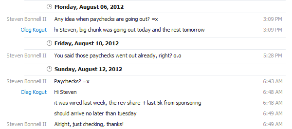 The last paycheck I received from own3d was marked for July. I don’t believe I will ever be paid for the last 5 months I streamed with them. I’m trying to keep this as formal and non-sensationalist as possible, but it’s hard to imagine the sinking feeling in the pit of my stomach that I get from even typing that out.
