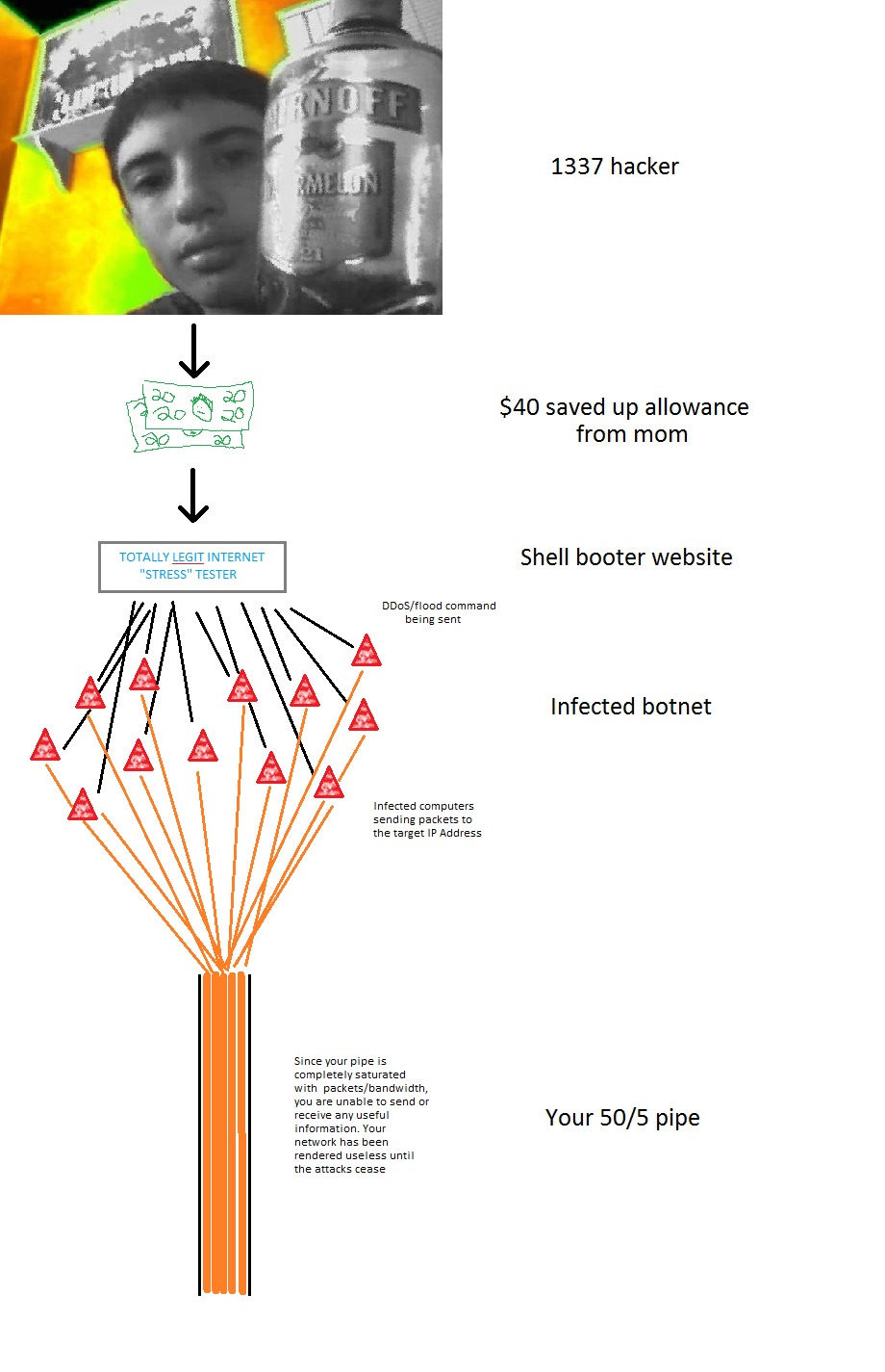 For your convenience, I’ve provided a flow chart that summarizes how a DDoS works.